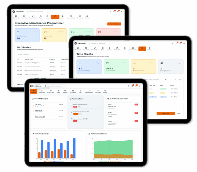 Any business that manages field technicians, service orders, and equipment maintenance can benefit from TrackWorks. This includes fleet maintenance teams, HVAC companies, electrical contractors, plumbing services, and facility management businesses.