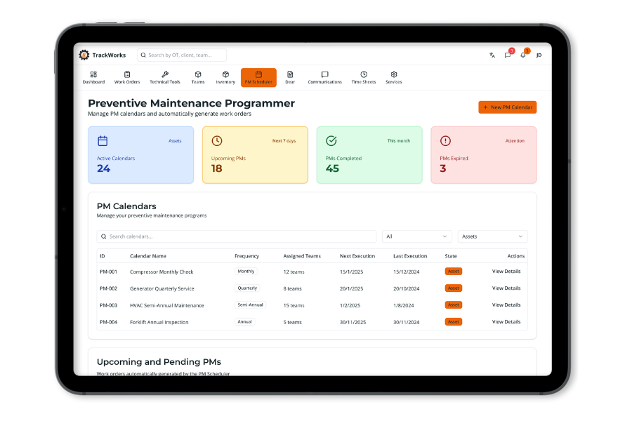Early peak season planning prevents costly overtime, missed SLAs, backlogs, and inventory shortages. Centralized systems like TrackWorks optimize work orders, dispatch, and analytics for smoother operations.