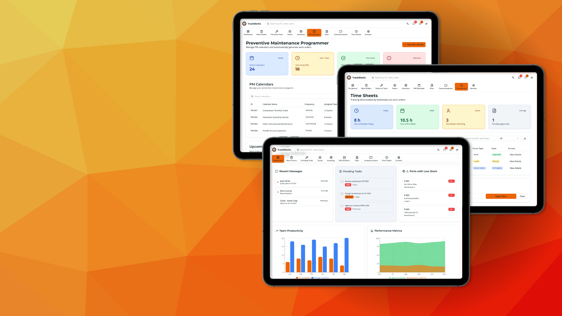 TrackWorks enhances operational visibility with real-time analytics, technician tracking, automated invoicing, and inventory integration, boosting efficiency, preventing revenue loss, and maximizing profits.
